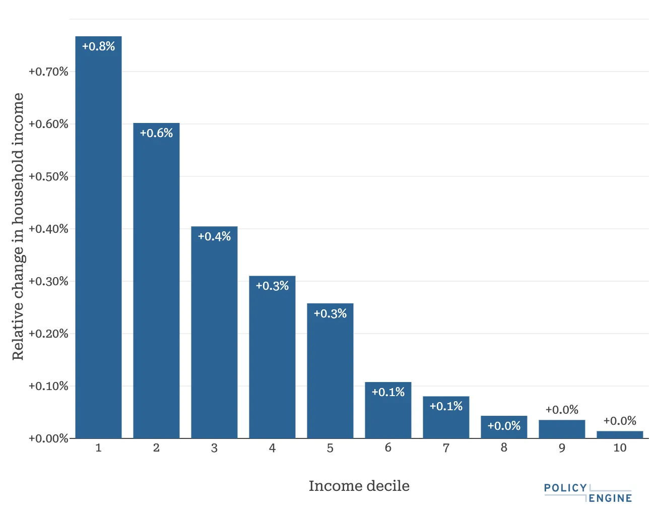 Our analysis shows that the uprating provides larger relative benefits for low-income households: it raises the lowest income decile's net income by 0.8%, and the top decile's by less than 0.1%.